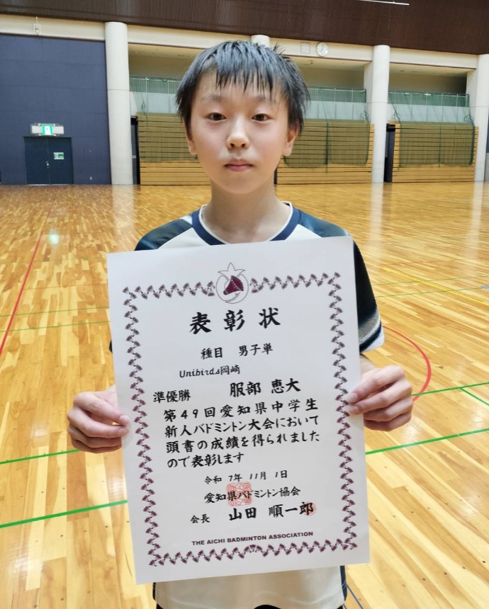 第一回みよしジュニアオープンでは4年生以下の皆さんが出場しました!下記の皆さんが入賞し大活躍のUnibirds岡崎でした!